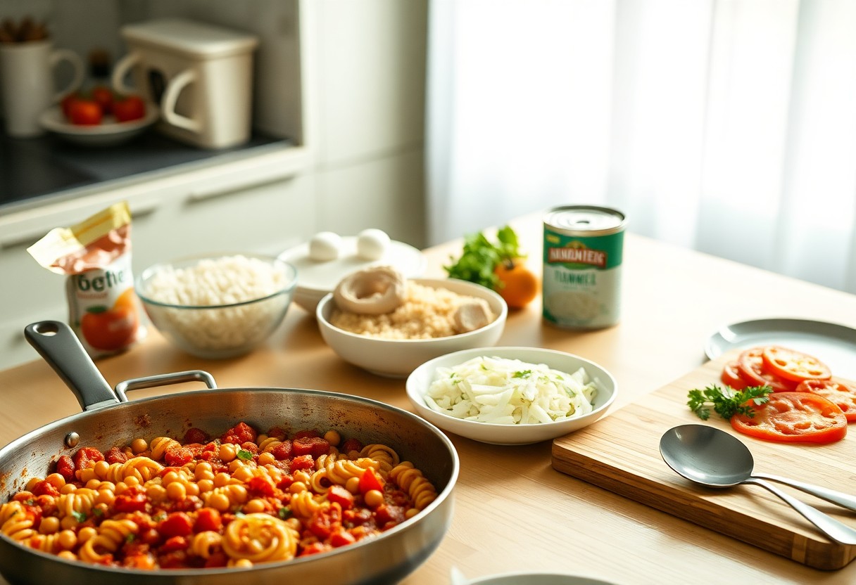 You’ll want long-lasting items that transform cheaply into many meals: white or brown rice, pasta, oats, canned tomatoes, beans, and flour. Store spices in airtight jars to keep potency, and rotate cans by date. Canned tomatoes and beans, typically $0.80-$1.50 each, anchor sauces and stews; a half-cup of dry rice or pasta becomes a hearty base when combined with sautéed aromatics and a splash of stock.