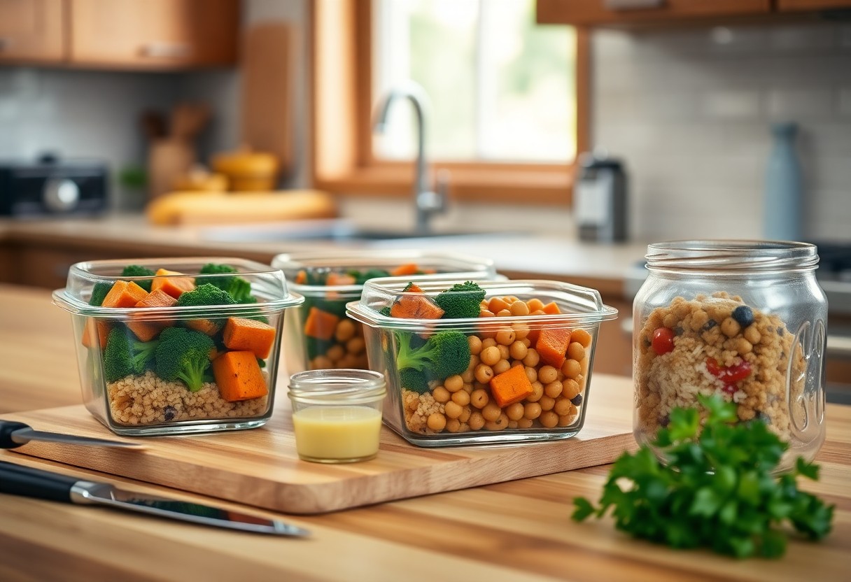 Start with batch-cooking basics: make 3-4 cups of cooked grains, 2-3 cans of beans drained, and a double tray of roasted vegetables on Sunday so you can mix-and-match lunches and dinners all week; use clear storage so you can see portions, label lids with dates, and freeze 1-2 ready meals for busy nights. Any small habit that saves you 15-30 minutes daily will add up to hours by Friday.