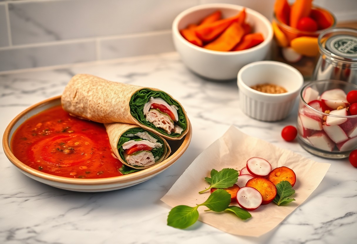 You can build fast, portable lunches that hit protein and veg targets: assemble wraps in 5 minutes using whole-grain tortillas or hearty slices, swap mayo for Greek yogurt or mashed avocado, and aim for 25-30 g protein per meal to keep you full. Use leftovers-grilled chicken, roasted veggies, or canned tuna-to cut prep time, and press or grill briefly for a warm, crunchy finish that improves texture and flavor.