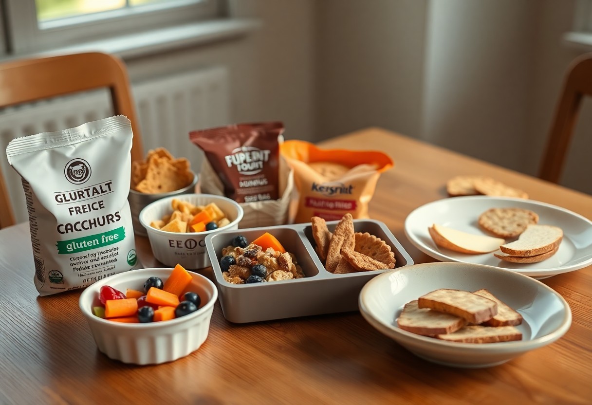 Swap wheat crackers for chickpea crisps, brown rice cakes, or 100% corn tortillas and pair them with 2 tbsp hummus (≈2-3 g protein) or 2 tbsp peanut butter (≈7-8 g) to meet protein goals; certified gluten‑free oats and quinoa salads also provide 4-6 g fiber per serving and a filling base for fruit and nuts.